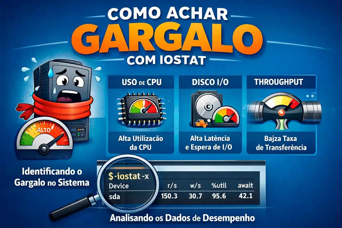 Na administração de sistemas e na engenharia de confiabilidade (SRE), o diagnóstico de performance é frequentemente comparado a um trabalho de detetive. Quando um servidor web começa a falhar ao entregar páginas, ou quando um banco de dados relacional (como MySQL ou PostgreSQL) começa a acumular conexões lentas, a reação instintiva da maioria dos profissionais é abrir o htop ou o top para verificar o uso de CPU e de memória RAM. Embora a CPU e a memória sejam componentes vitais, eles raramente são o verdadeiro gargalo em arquiteturas modernas. O verdadeiro culpado, na esmagadora maioria das vezes, reside no subsistema mais lento de qualquer computador: o armazenamento. É por isso que dominar a arte de achar gargalo com iostat não é apenas um diferencial, mas um requisito obrigatório para qualquer Sysadmin ou DevOps.