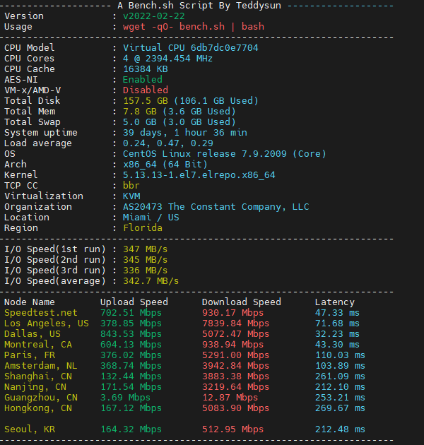 This script displays important system information, runs network speed test at various checkpoints and writes data to disk (IO speed) of Linux server.
