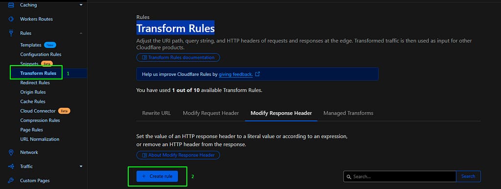 3 – In the left-hand column, click on the Rules menu to display the options and select Transform Rules