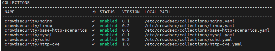 When installing crowdsec, “collections” of some systems that you have on your server are already pre-configured.