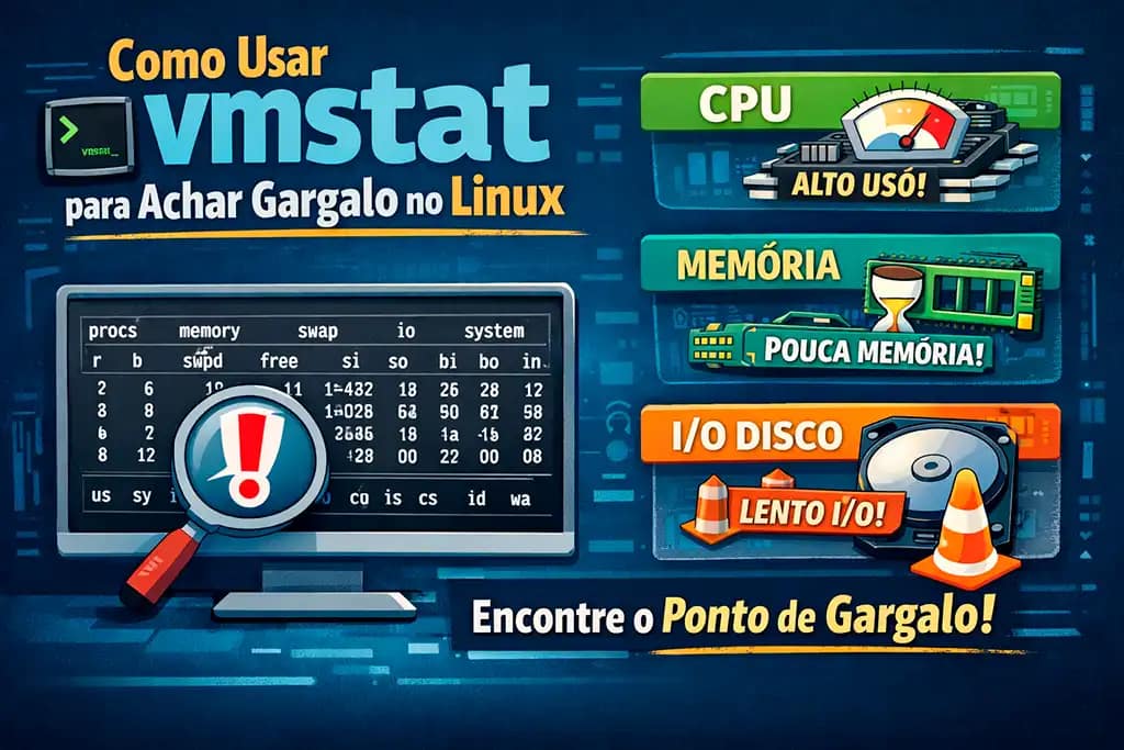 Saber usar vmstat para achar gargalo é uma habilidade essencial para qualquer administrador de sistemas Linux. Com apenas um comando é possível identificar rapidamente se a lentidão do servidor está relacionada a CPU, memória, disco ou limitações da infraestrutura virtualizada.